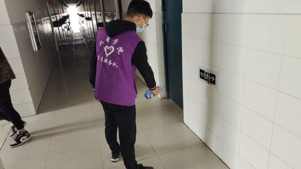 活动开始之前,志愿者们于12号宿舍楼前集合开展准备工作,如灌装消毒液、佩戴口罩手套和分配人员工作区域等。准备工作完毕后,志愿者们带着消毒器具向着各自分发的宿舍前进。活动主要为宿舍消毒,同学们积极配合、主动打扫寝室卫生,着重对寝室的阳台、桌面、地面、洗漱台、厕所等寝室公共活动区域和卫生死角进行消毒杀菌。同时在检查寝室消杀情况的过程中,还提醒同学们在今后的校园生活中,养成戴口罩、勤洗手、多开窗通风、避免人多密集的习惯。